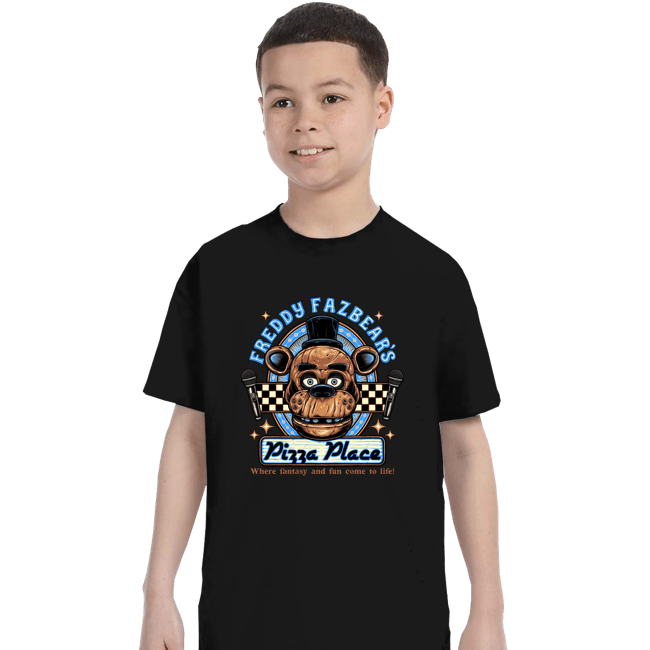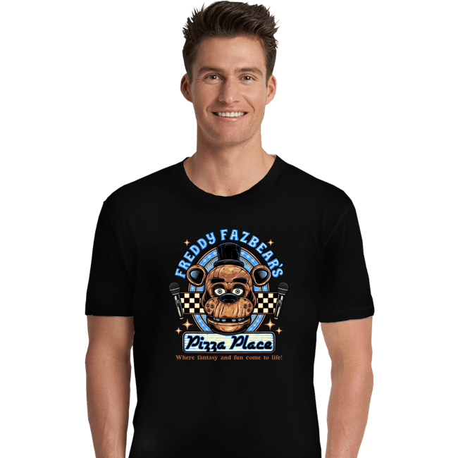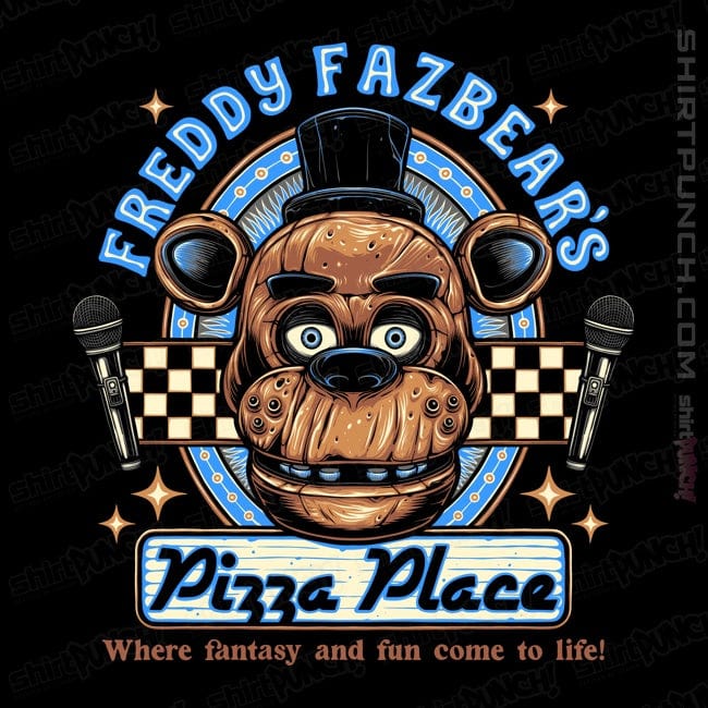 Freddy's Pizza Place is a pop culture t-shirt featuring bold graphic artwork. Created by independent artist momma_gorilla, this shirt brings creative artistry to wearable pop culture apparel. Perfect for pop culture fans and graphic tee collectors. Quality graphic tee perfect for pop culture events, hangouts, or daily expression. A must-have for collectors of unique graphic tees and pop culture apparel.