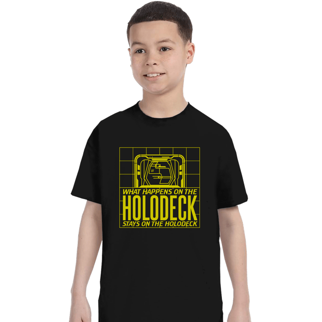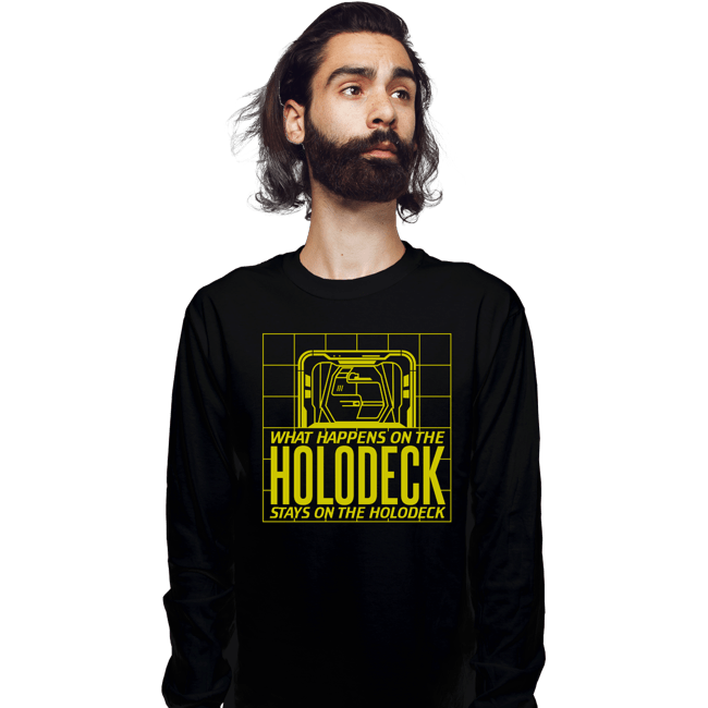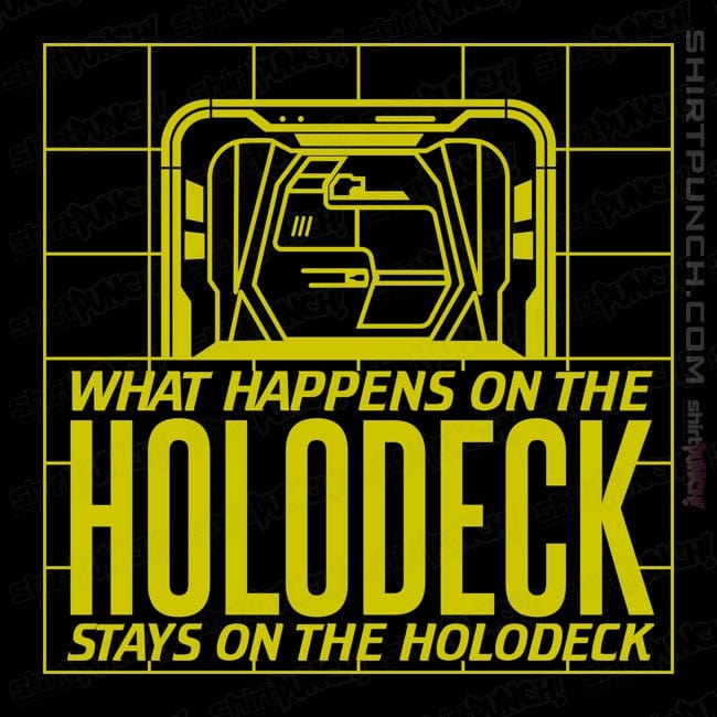 What Happens On The Holodeck is a pop culture t-shirt featuring bold graphic artwork. Created by independent artist Meta_Cortex, this shirt brings creative artistry to wearable pop culture apparel. Perfect for pop culture fans and graphic tee collectors. High-quality apparel perfect for cosplay gatherings, casual outings, or collectors. A must-have for collectors of unique graphic tees and pop culture apparel.