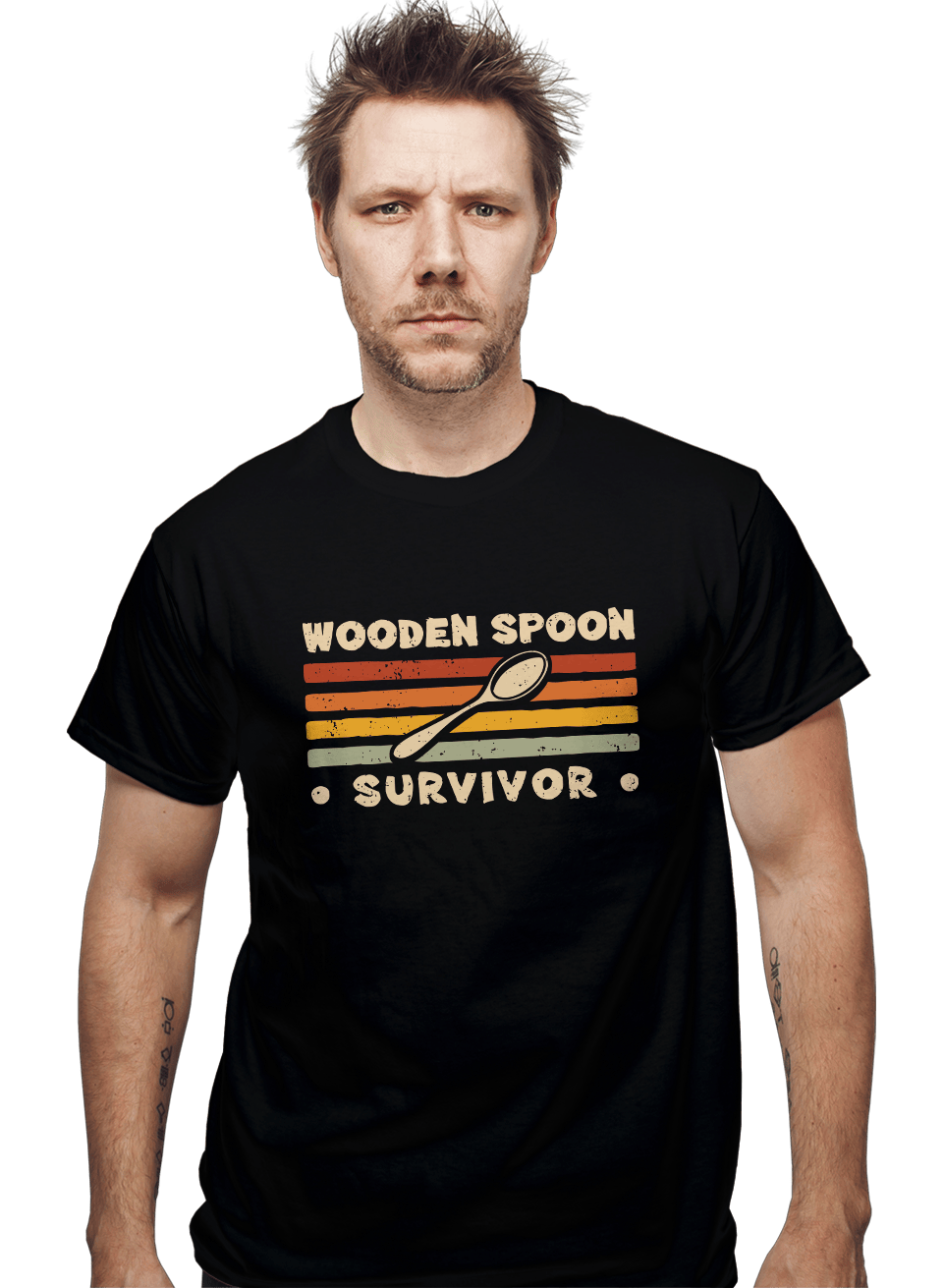 Wooden Spoon Survivor is a nerdy t-shirt that celebrates fandom culture and pop culture enthusiasts. This unique artwork was created by independent artist Retrodivision, bringing their creative vision to wearable geek culture apparel. Made with premium materials for a comfortable fit and long-lasting print quality, making it a standout piece for any geek, nerd, or pop culture collector's wardrobe. Perfect for fandom enthusiasts, convention-goers, and anyone who appreciates creative, artist-driven nerdy apparel.